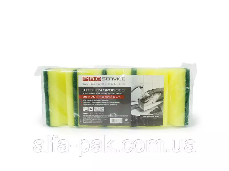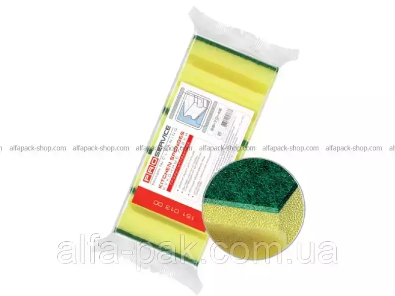 Губки кухонные "PRO SERVICE" Профилированные - незаменимый атрибут, который находится в арсенале каждой хозяйки. Используется для мытья посуды, а также очистки рабочих поверхностей, раковин, туалетов и ванн. Используются совместно с моющими средствами или без них. Жесткая сторона мочалки рассчитана на удаление въевшихся загрязнений, не повреждая при этом поверхность. Мягкий поролоновый слой имеет большую толщину поролона и специальные профили углубления по двум сторонам для удобного захвата пальцами, что обеспечивает ее использование в течение длительного времени, при выполнении операций преимущественно абразивной стороной. Губки кухонные "PRO SERVICE" Профилированные хорошо вспенивают и задерживают моющие средства, что существенно сказывается на их расходе и обеспечивает равномерную очистку поверхности от загрязнений: остатков пищи, пыли и прочего.