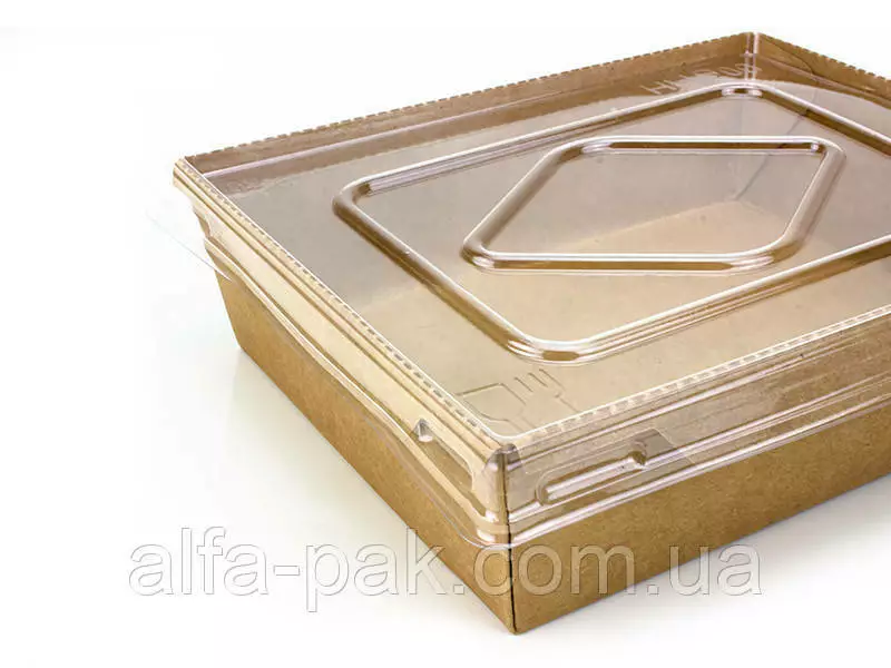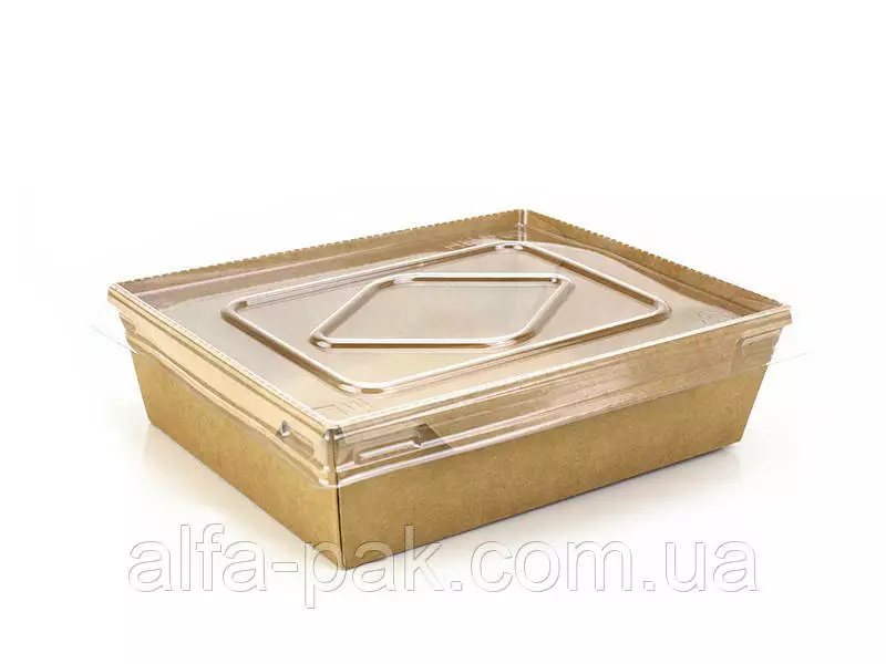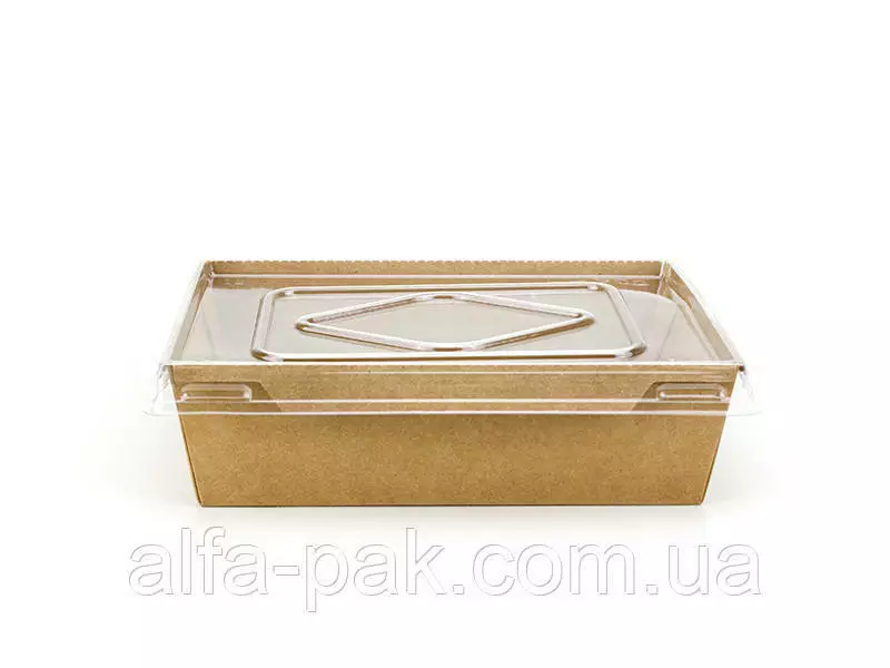 Контейнер прямоугольный крафт с ПЭТ крышкой, 900 мл