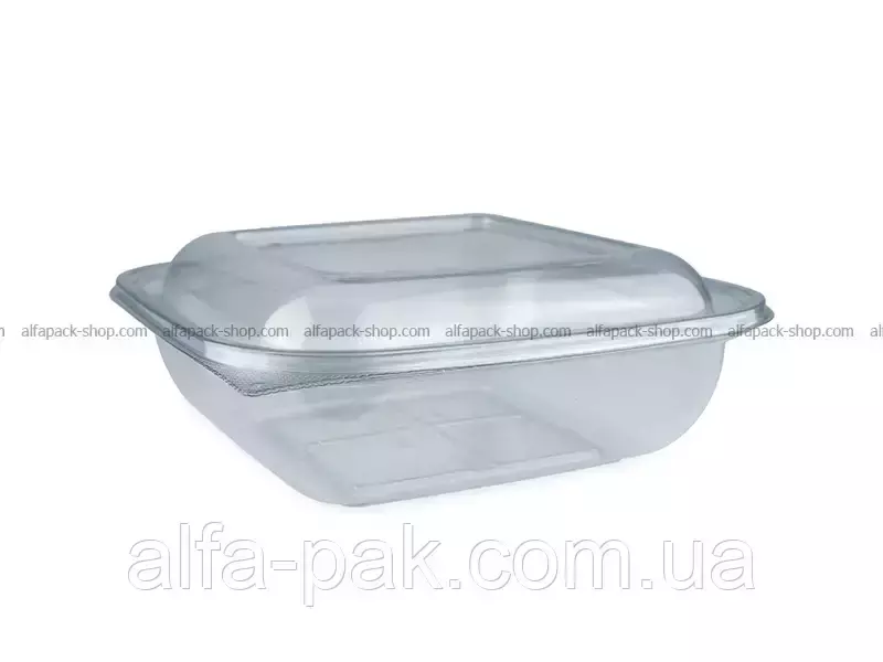Контейнер квадратный прозрачный 1000 мл удобная и практичная тара, изготовленная из не токсичных материалов для хранения продуктов питания. Данная упаковка чаще всего используется для расфасовки салатов, полуфабрикатов, кондитерских изделий, а также продукции, готовой к употреблению. Благодаря тому, что контейнер изготовлен из прозрачного материала, покупатель легко сможет увидеть товар, не открывая при этом упаковку. Контейнер квадратный прозрачный 1000 мл может быть укомплектован крышкой.