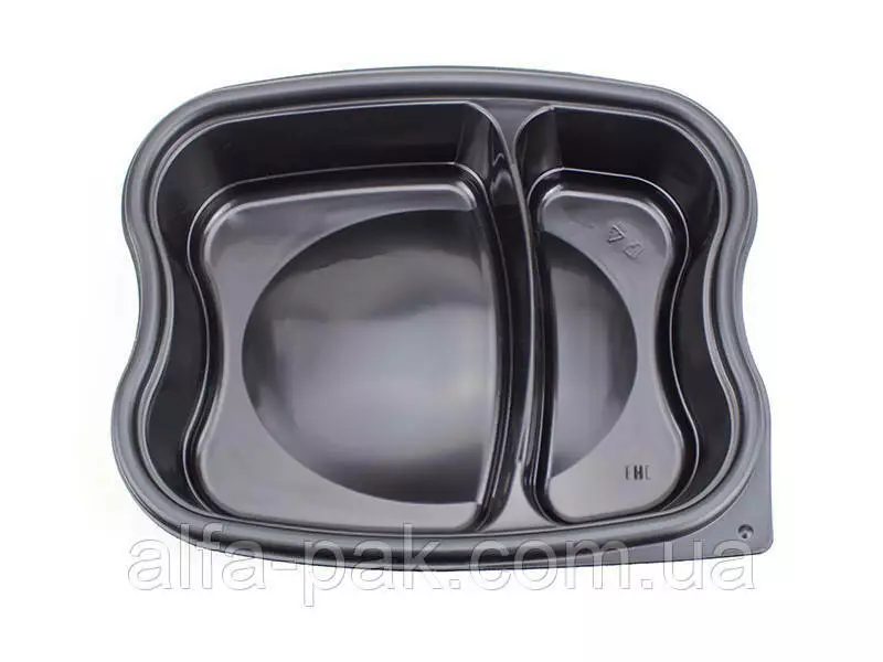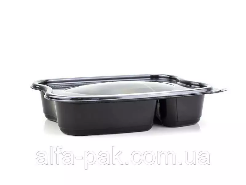 Удобная и практичная упаковка, изготовленная из нетоксичных материалов, безопасных для организма. Используется для горячих и холодных блюд, приготовленных к употреблению. Материал контейнера плотный, не разрушается и при взаимодействии с горячей едой не вызывает дискомфорта в руках. Контейнер (2 секции) 1000 мл черный с крышкой можно приобрести без крышки. Эта позиция актуальна для служб, специализирующихся на доставке еды.