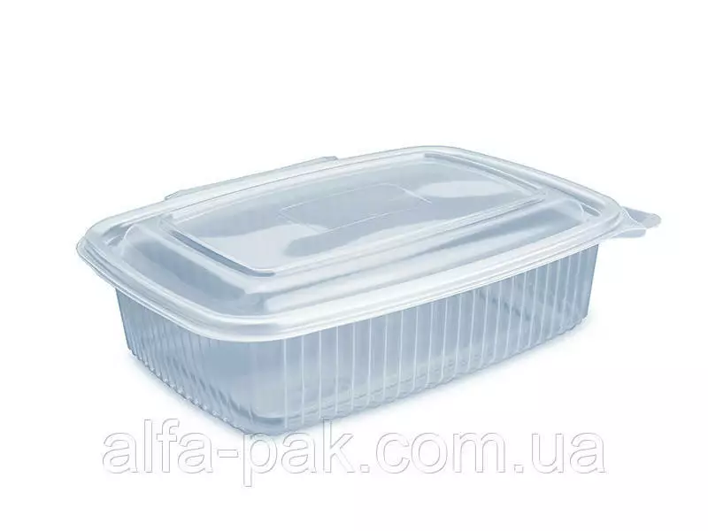 Контейнер ПП с крышкой 1000 мл - удобная и практичная тара, изготовленная из не токсичных материалов для хранения продуктов питания. Данная упаковка чаще всего используется для расфасовки салатов, полуфабрикатов, кондитерских изделий, а также продукции, готовой к употреблению. Благодаря тому, что контейнер изготовлен из прозрачного материала, покупатель легко сможет увидеть товар, не открывая при этом упаковку. В данной продукции несъемная крышка, фиксируется при помощи замков.