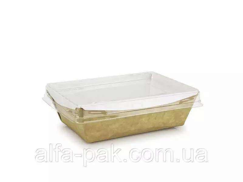 Контейнер прямоугольный Crystal Box 400 мл с купольной крышкой удобная и практичная тара, изготовленная из не токсичного материала — крафт картона. Предназначена для хранения продуктов питания. Контейнер используется для салатов, полуфабрикатов и прочей готовой продукции готовой к употреблению. Данная позиция укомплектовывается крышкой ПЭТ.