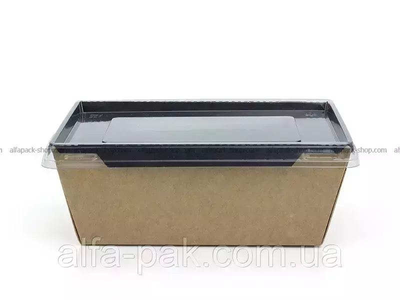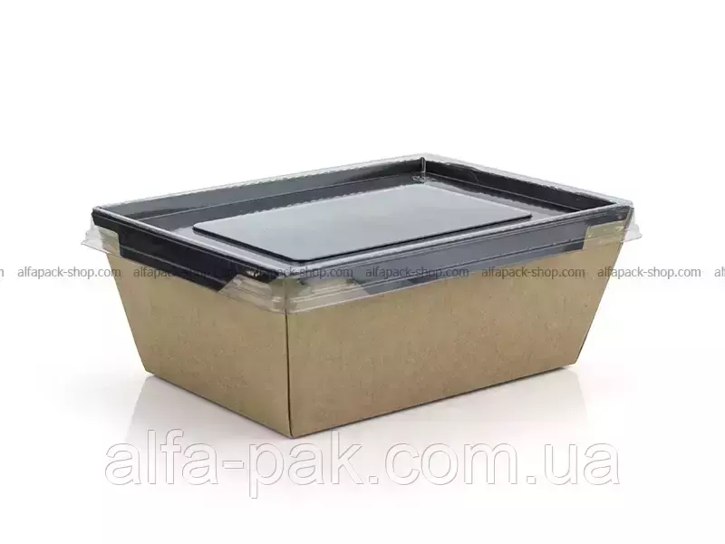 Контейнер прямоугольный крафт-черный с ПЭТ крышкой 1000 мл