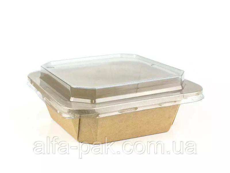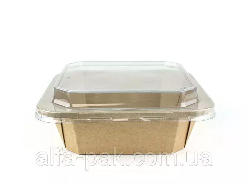 Контейнер прямоугольный крафт с ПЭТ крышкой 1000 мл - удобная и практичная тара, изготовленная из не токсичного материала (крафт картона) для хранения продуктов питания. Данная упаковка чаще всего используется как ланч-бокс для расфасовки салатов, полуфабрикатов, кондитерских изделий, а также продукции, готовой к употреблению. Удобен для служб доставки и ресторанов с позициями на вынос. Благодаря тому, что крышка изготовлена из прозрачного материала (полиэтилентерефталат), покупатель легко сможет увидеть товар, не открывая при этом упаковку.