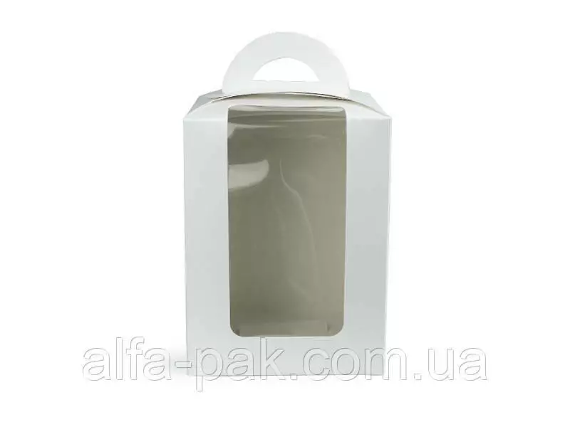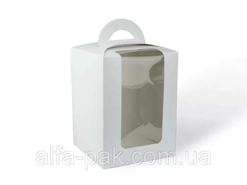 Коробка бумажная белая с окошком для пасок 140*140*180