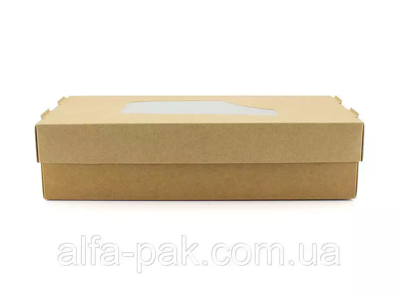 Коробка с окошком - удобная тара, которая используется для продуктов питания. Изготовлена из плотного мелованного картона, основа которого натуральный материал - целлюлоза. Поэтому безопасна при контакте с едой, не выделяет никаких вредных веществ. Зачастую используется для сетов из роллов, суши, но может служить упаковкой для различных десертов, печенья, зефира, натуральной пастилы. Актуальна для кафе и ресторанов, доставки еды. Коробка с окошком и крафтовой крышкой защищает содержимое, благодаря жиростойкой ламинации с внешней стороны
