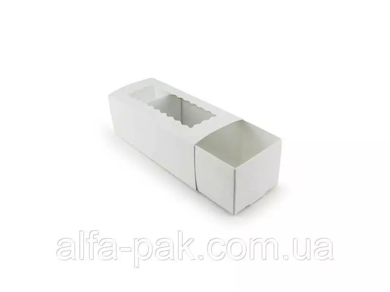 Коробка для макарун белая Mini - удобная и практичная тара для упаковки, продажи и транспортировки популярных кондитерских изделий - макарунов. Изготовлена из экологически чистых материалов и является безопасной для организма. Коробка для макарун белая Mini сделана из качественного мелованного картона и оборудована окошком из пленки, чтобы содержимое могло просматриваться. Данная упаковка может использоваться как для печенья макарон, так и других кондитерских и пищевых изделий.