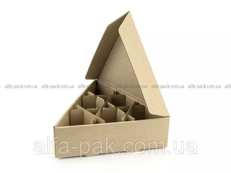 Коробка для яиц на 6 шт треугольная — очень практичная упаковка для яиц; в отличие от обычных упаковок для яиц из переработанной бумаги, плотно закрывается внутрь и защищает содержимое от выпадания. Изготавливается из качественного первичного картона. Такая коробка очень надежна и экологична. Имеет оригинальную форму. Упаковка для яиц состоит из совмещенного дна и крышки и вынимаемой менажницы, которая формирует 6 ячеек для яиц. Может использоваться как для куриных яиц, так и кондитерских из шоколада, например, на Пасху или другие праздники.