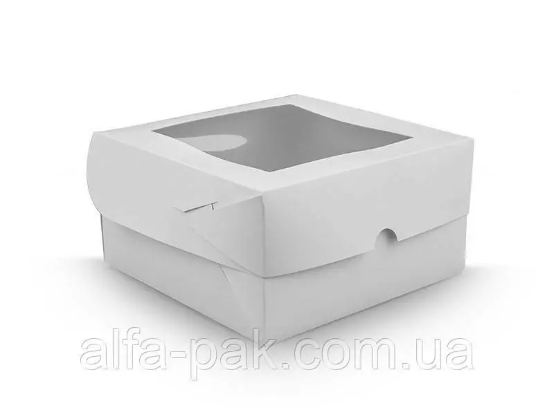Коробка квадратная с окном белая - удобная и практичная тара, изготовленная из не токсичного материала - крафт картона. Предназначена для хранения продуктов питания. Коробка квадратная с окном используется для упаковки тортов, пироженых, сладостей, печенья, натуральной пастилы, а также различных замороженных полуфабрикатов (пельмени, хинкали) и прочей готовой продукции готовой к употреблению. Внутренние стенки контейнера покрыты ламинацией, потому упаковка прочная и стойкая к воздействию влаги, жира и т.д.