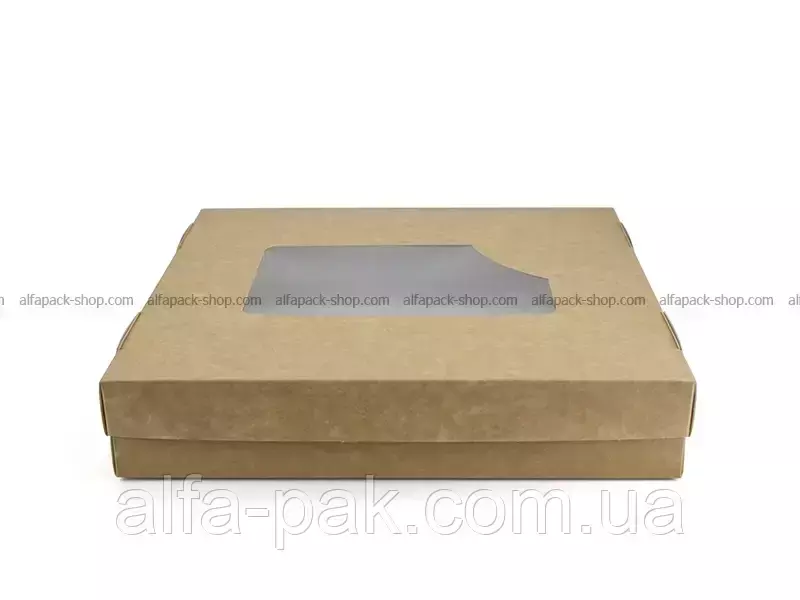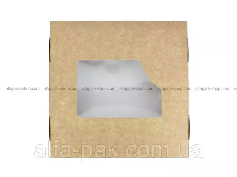 Коробка квадратная с окном крафт-белая