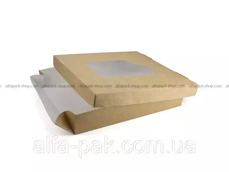 Коробка квадратная с окном крафт-белая - удобная и практичная тара, изготовленная из не токсичных материалов. Изготовлена из плотного мелованного картона, основа которого натуральный материал - целлюлоза. Безопасна при контакте с едой, не выделяет никаких вредных веществ. Зачастую используется для сетов из роллов, суши, но может служить упаковкой для различных десертов, печенья, зефира, натуральной пастилы. Актуальна для кафе и ресторанов, доставки еды. Коробка квадратная с окном крафт-белая защищает содержимое, благодаря жиростойкой ламинации. При желании вы можете заказать нанесение печати вашего логотипа и любого другого изображения. Коробка квадратная с окном крафт-белая может быть укомплектована крышкой.