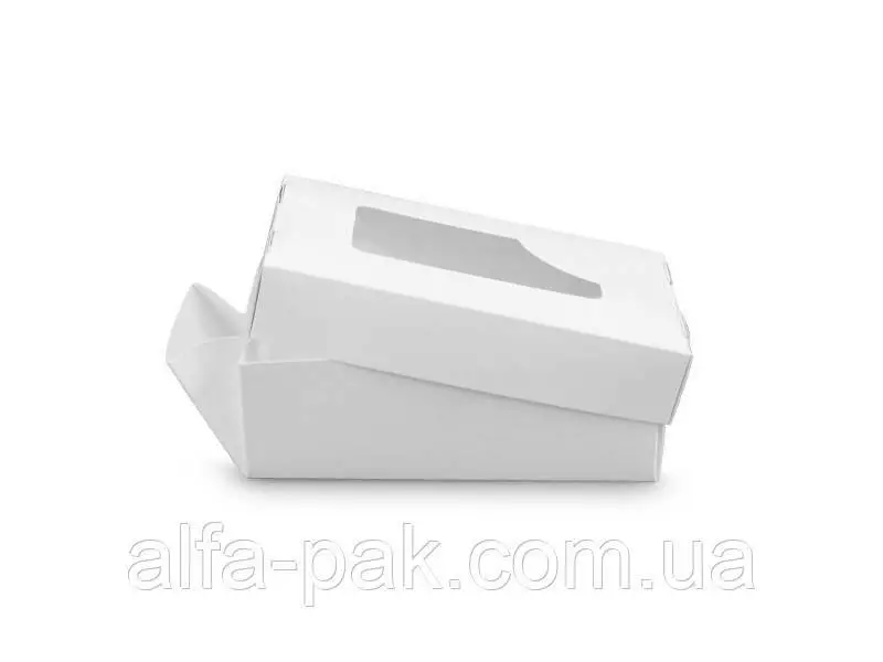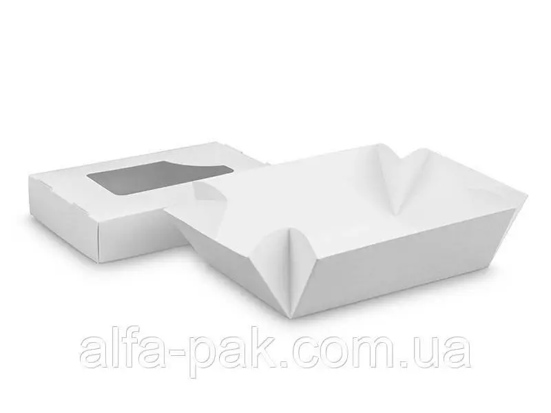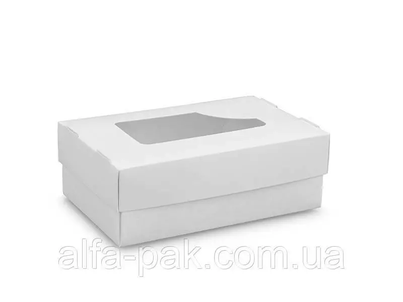 Коробка прямоугольная с окном белая - удобная и практичная тара, изготовленная из не токсичных материалов. Изготовлена из плотного мелованного картона, основа которого натуральный материал - целлюлоза. Безопасна при контакте с едой, не выделяет никаких вредных веществ. Зачастую используется для сетов из роллов, суши, но может служить упаковкой для различных десертов, печенья, зефира, натуральной пастилы. Актуальна для кафе и ресторанов, доставки еды. Коробка прямоугольная с окном белая защищает содержимое, благодаря жиростойкой ламинации. При желании вы можете заказать нанесение печати вашего логотипа и любого другого изображения. Коробка может быть укомплектована крышкой.