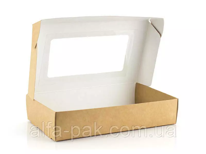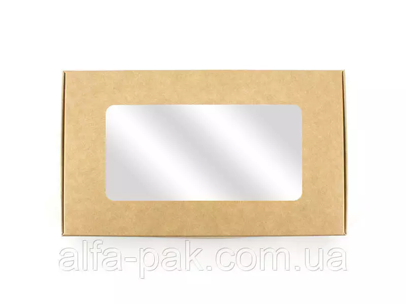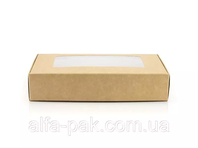 Коробка с окном крафт-белая - удобная и практичная тара, изготовленная из не токсичного материала - крафт картона. Предназначена для хранения продуктов питания. Коробка с окном крафт-белая используется для упаковки сладостей, печенья, натуральной пастилы, а также различных замороженных полуфабрикатов (пельмени, хинкали) и прочей готовой продукции готовой к употреблению. Внутренние стенки контейнера покрыты ламинацией, потому упаковка прочная и стойкая к воздействию влаги, жира и т.д.