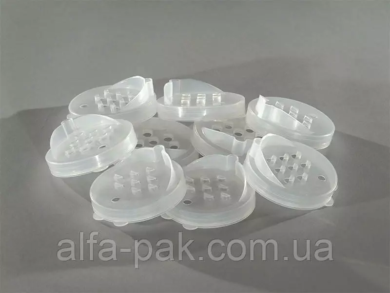 Крышка для слива консерванта имеет отверстия, через которые сливается жидкость. Материал из которого сделана крышка позволяет ей плотно садиться на банку.
