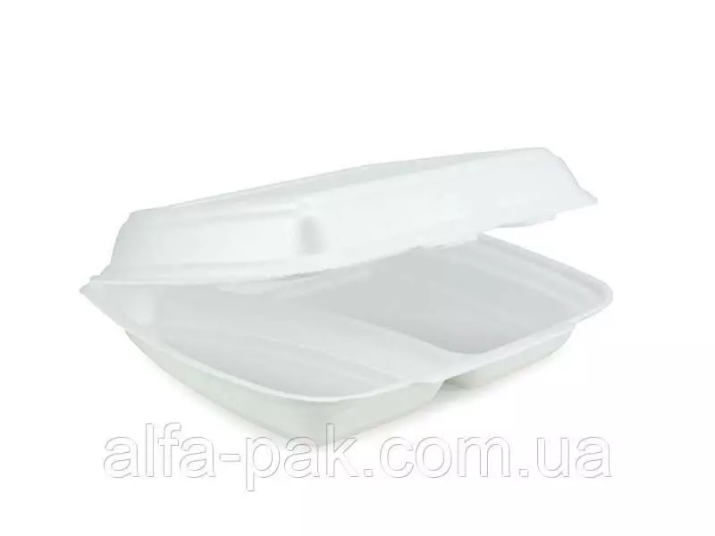 Ланч бокс из вспененного полистирола НР-2 белый - удобная и практичная тара, изготовленная из не токсичных материалов, которые являются безопасными для организма. Используется для горячих и холодных продуктов питания, подготовленных к употреблению. Материал упаковки плотный, не разрушается, а при взаимодействии с горячими блюдами не доставляет дискомфорта рукам. Еще одним достоинством тары из полистирола является минимальный вес и предотвращение появления конденсированной влаги. Ланч бокс из вспененного полистирола НР-2 белый имеет две секции и несъемную крышку, на которой расположены выступающие элементы крепежа, заходящие при закрытии в прорези на нижней части тары. Благодаря материалу, контейнер достаточно долго сохраняет еду теплой. Данная позиция актуальна для служб специализирующихся на доставке пищи.