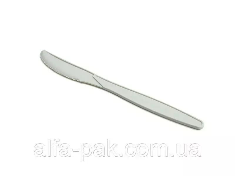 Нож из кукурузного крахмала это незаменимый атрибут одноразовой посуды. Изготовлен из не токсичных, разлагаемых материалов и не представляет опасности для организма. Используется зачастую на пикнике, вечеринке и местах быстрого питания, где практичность играет большую роль. Нож из кукурузного крахмала устойчив к механическому воздействию и может применяться для горячих и холодных блюд.