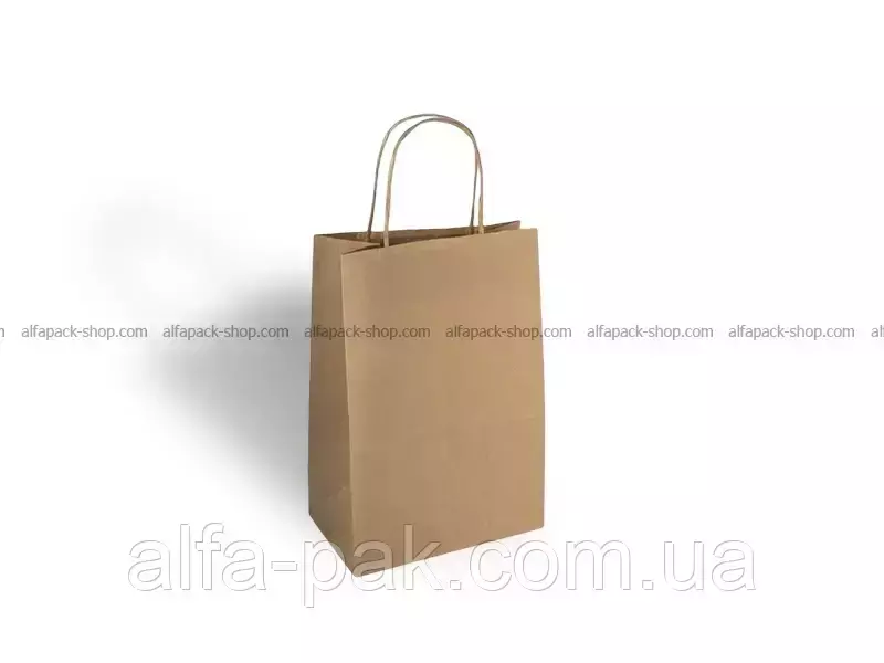 Пакет бумажный бурый с ручками, 190х280 мм