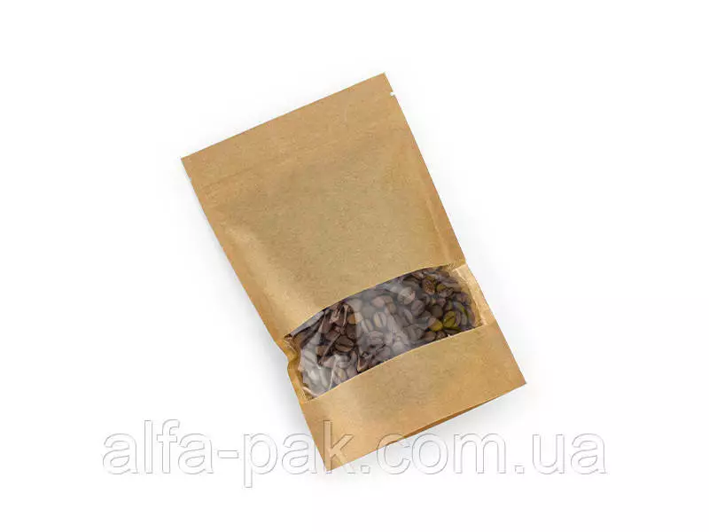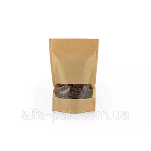 Пакет дой-пак 130*200 крафт с прямоугольным окном
