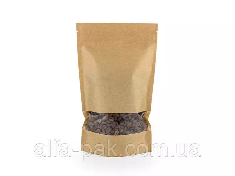 Пакет дой-пак 140*240 крафт с прямоугольным окном