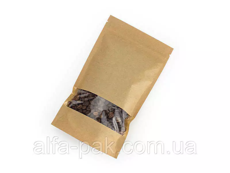 Пакет дой-пак крафт с прямоугольным окном, 180х280 мм