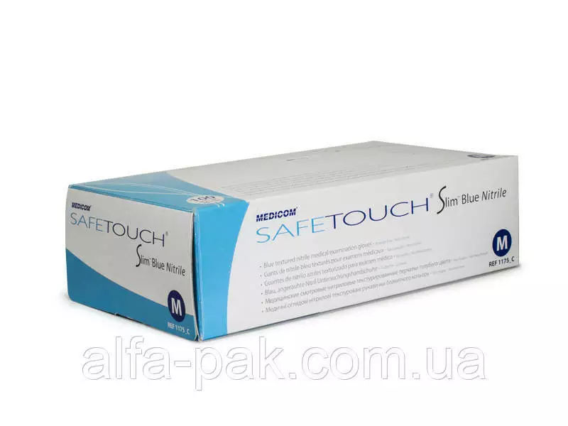Перчатки нитриловые голубые не припудренные (размер 7-8/M)