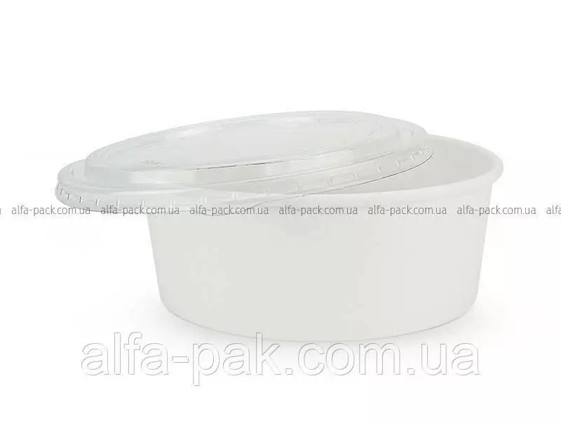 Салатник круглый белый 1000 мл с пластиковой крышкой