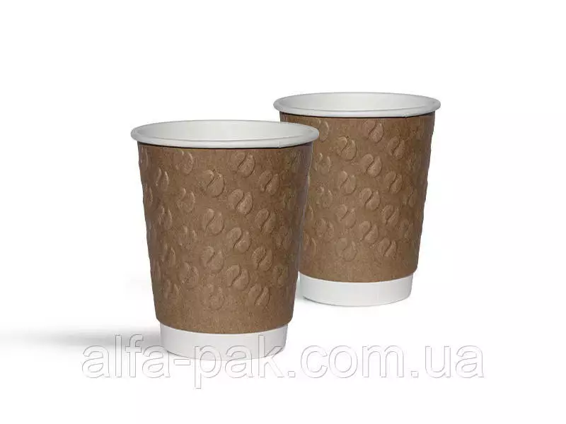 Стакан белый c тиснением "Кофейные зерна" крафт 180 мл