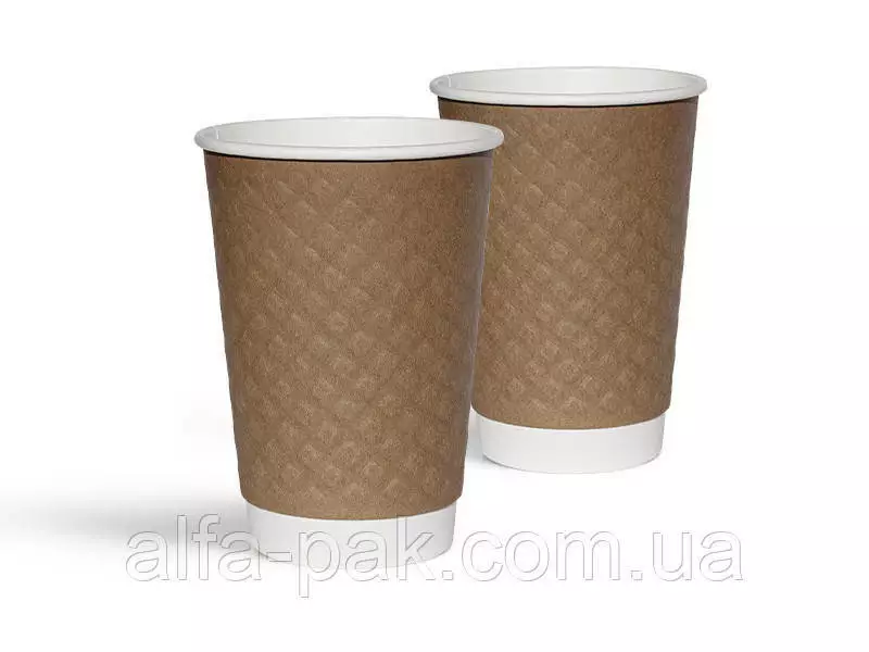 Стакан белый c тиснением "Ромб" крафт 340 мл