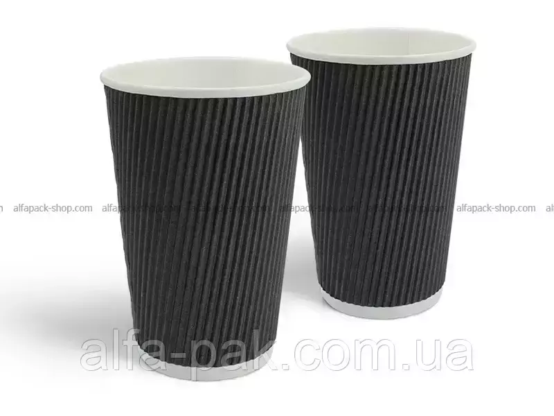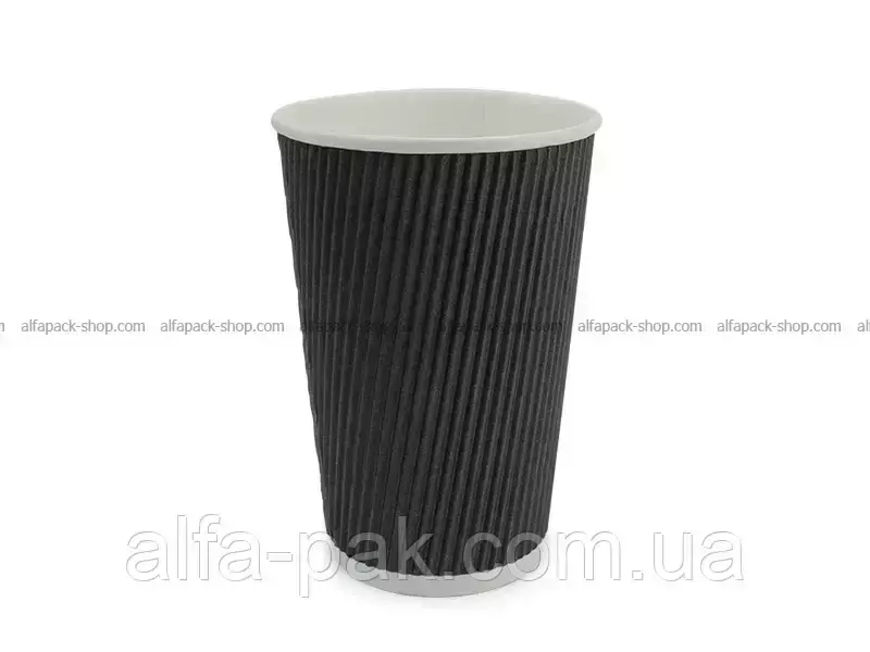 Стакан белый гофрированный черный, 500 мл