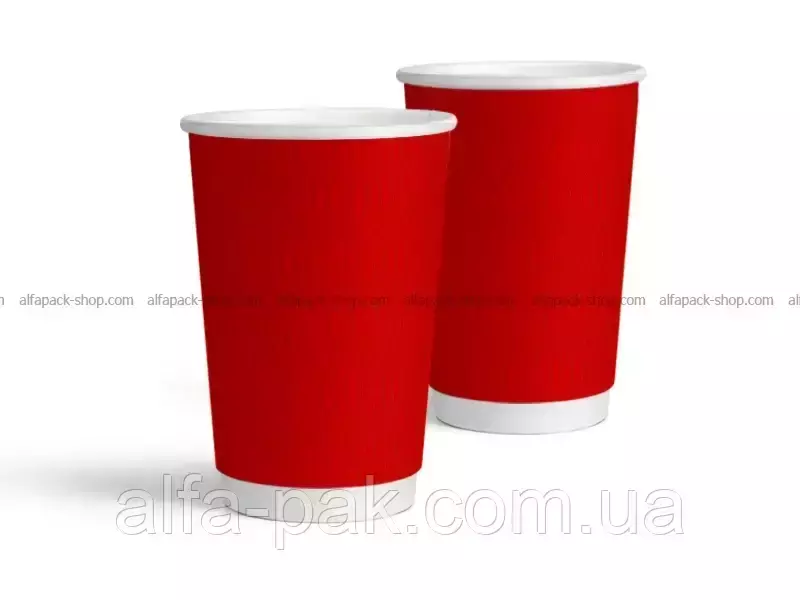 Стакан белый гофрированный красный 340 мл S-волна