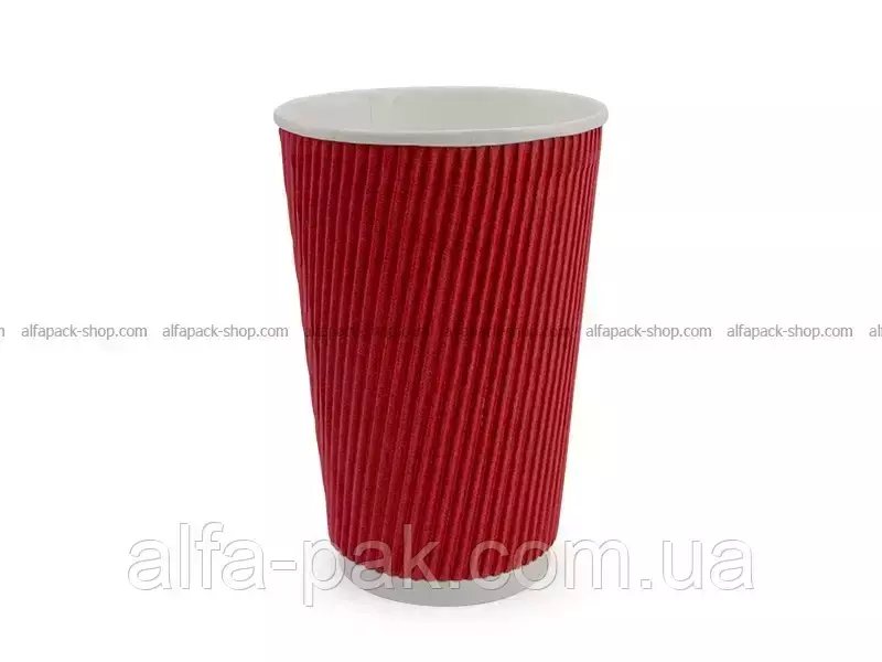 Стакан белый гофрированный красный 500 мл