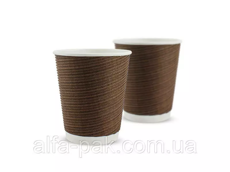 Стакан гофрированный 270 мл.(коричневый) F-ВОЛНА ГОРИЗОНТАЛЬНАЯ