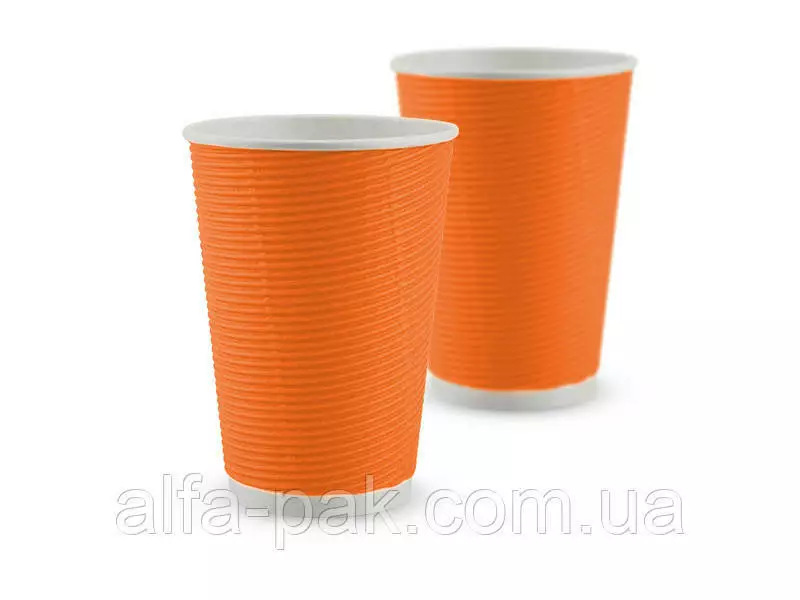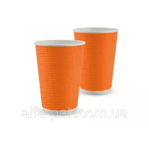 Стакан белый гофрированный оранжевый F-волна горизонтальная, 340 мл