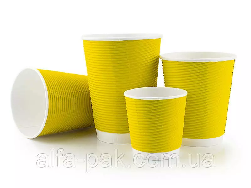 Стакан белый гофрированный желтый 340 мл F-волна горизонтальная популярная тара для напитков. Производится из экологически чистого материала, что делает ее безопасной для организма. Используется зачастую под кофе, чай и воду. Плотные стаканчики имеют привлекательный внешний вид и могут применяться как для горячих, так и холодных напитков. Поверхность стакана покрыта слоем гофрокартона, благодаря чему не деформируется при нажатии, движении и переносе. Гофрированная поверхность стакана дольше сохраняет температуру напитка в нем, не создавая при этом дискомфорта рукам. Стакан белый гофрированный желтый 340 мл F-волна горизонтальная актуален в местах быстрого питания, где практичность занимает важное место.