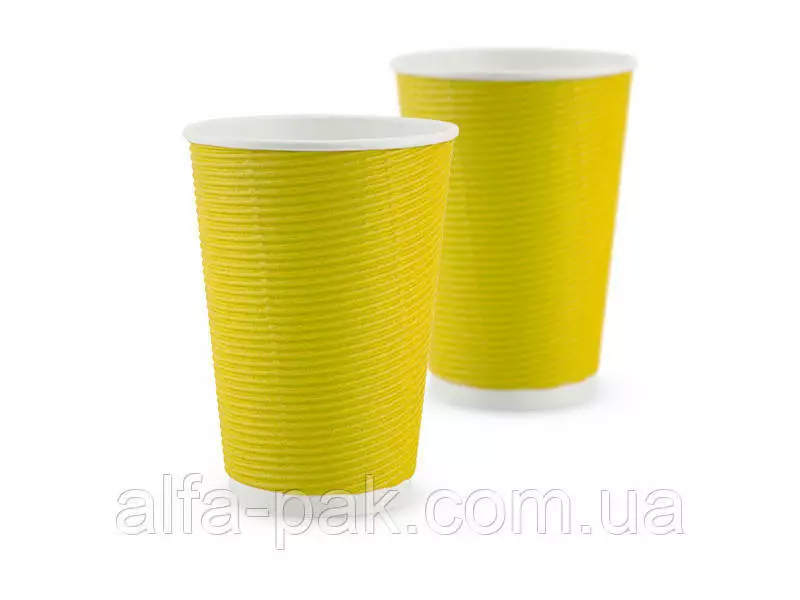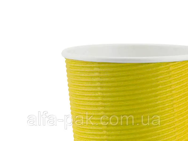 Стакан белый гофрированный желтый F-волна горизонтальная, 340 мл