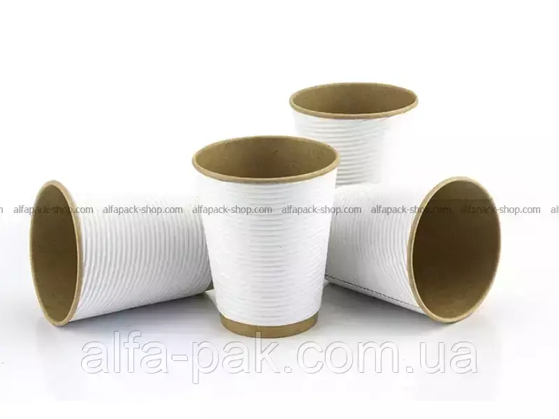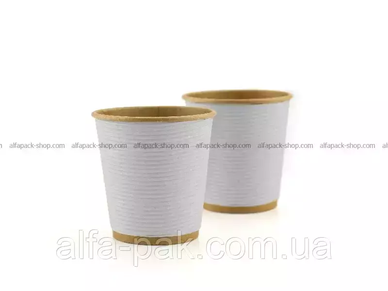 Стакан крафт гофрированный белый F-волна горизонтальная, 110 мл