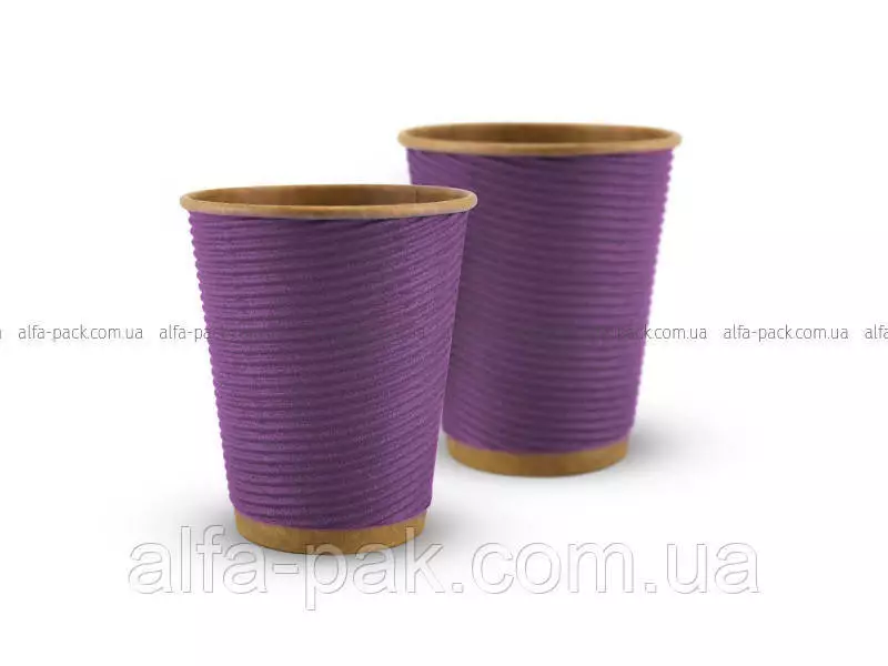 Стакан крафт гофрированный лаванда F-волна горизонтальная, 180 мл