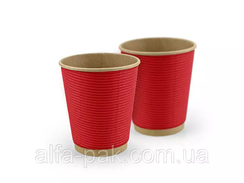 Стакан крафт гофрированный красный F-волна горизонтальная, 270 мл