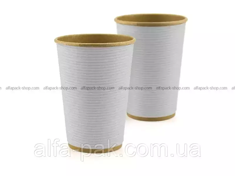 Стакан крафт гофрированный 340 мл. (белый) F-ВОЛНА ГОРИЗОНТАЛЬНАЯ