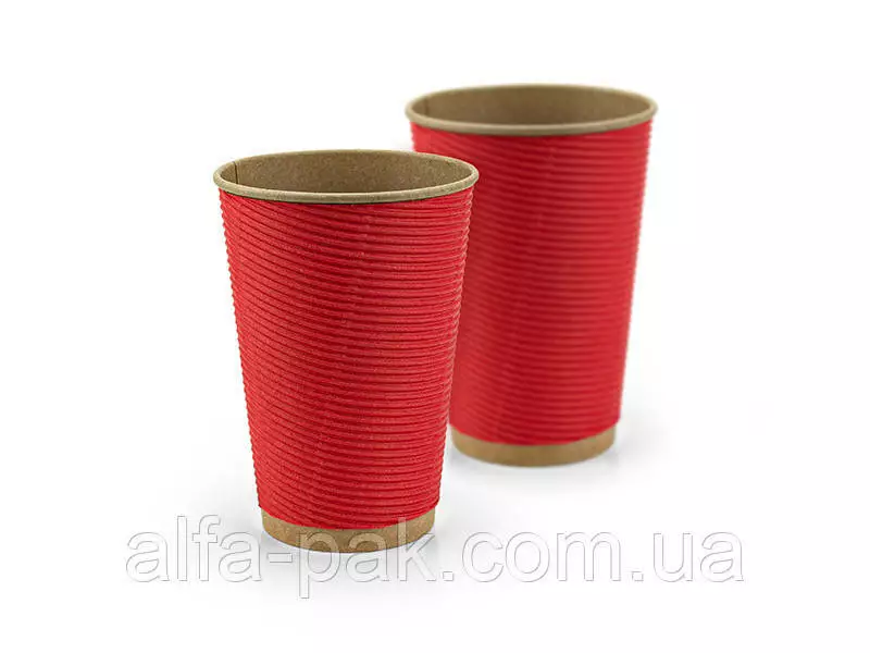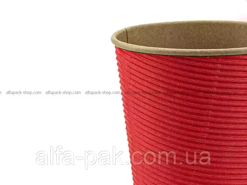 Стакан крафт гофрированный красный F-волна горизонтальная, 340 мл