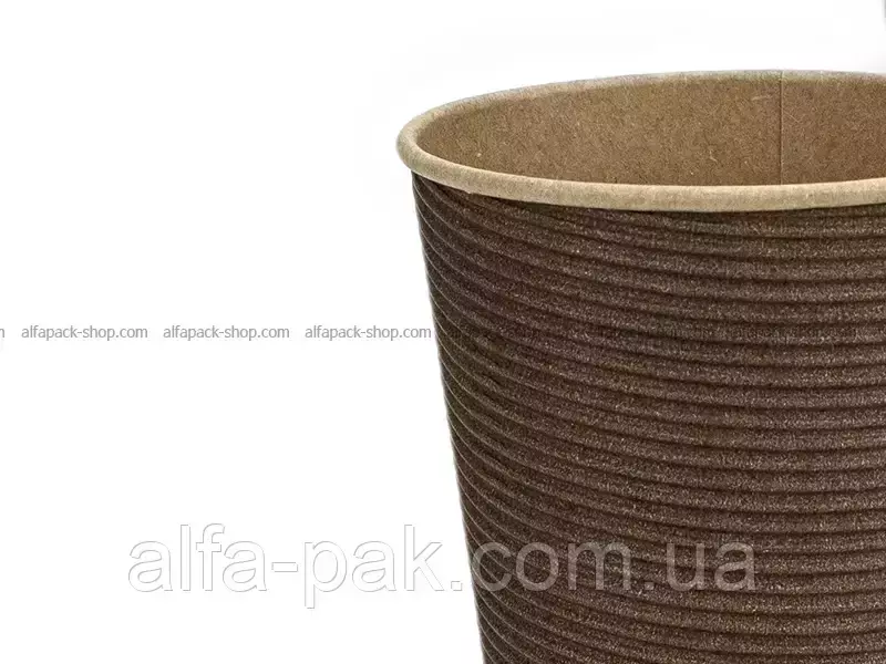Стакан крафт гофрированный коричневый 440 мл F-волна горизонтальная
