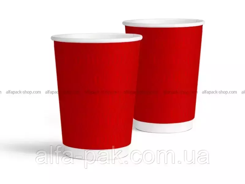 Стакан крафт гофрированный красный F-волна горизонтальная, 440 мл