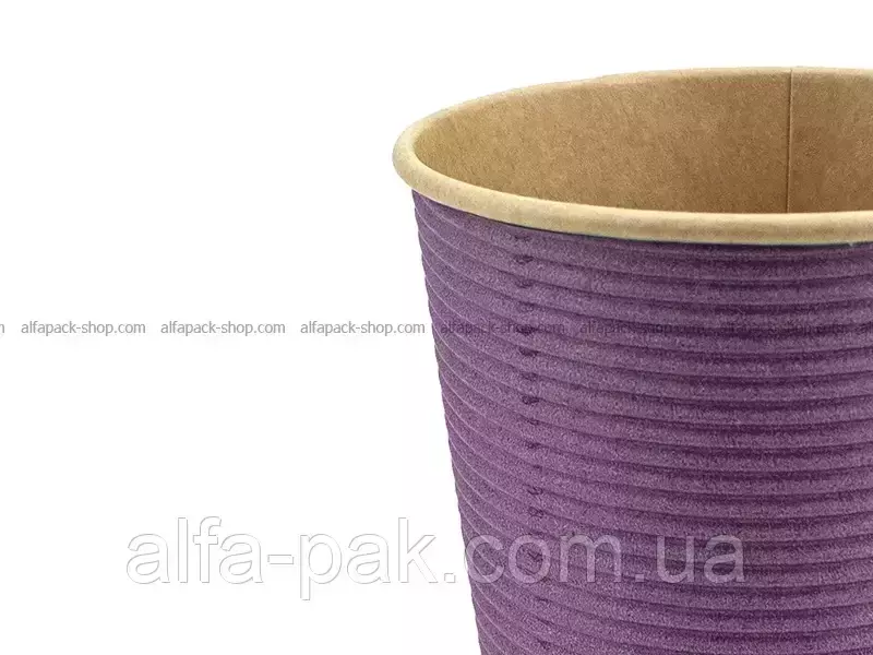 Стакан крафт гофрированный лаванда F-волна горизонтальная, 440 мл