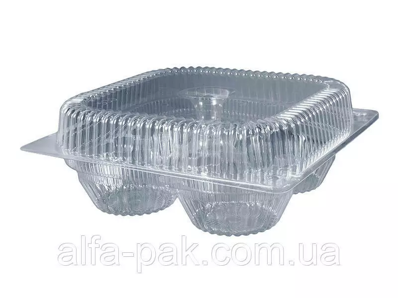 Данная упаковка чаще всего используется для расфасовки выпечки и пирожных. Благодаря тому, что контейнер изготовлен из прозрачного материала, покупатель легко сможет увидеть товар, не открывая при этом упаковку.