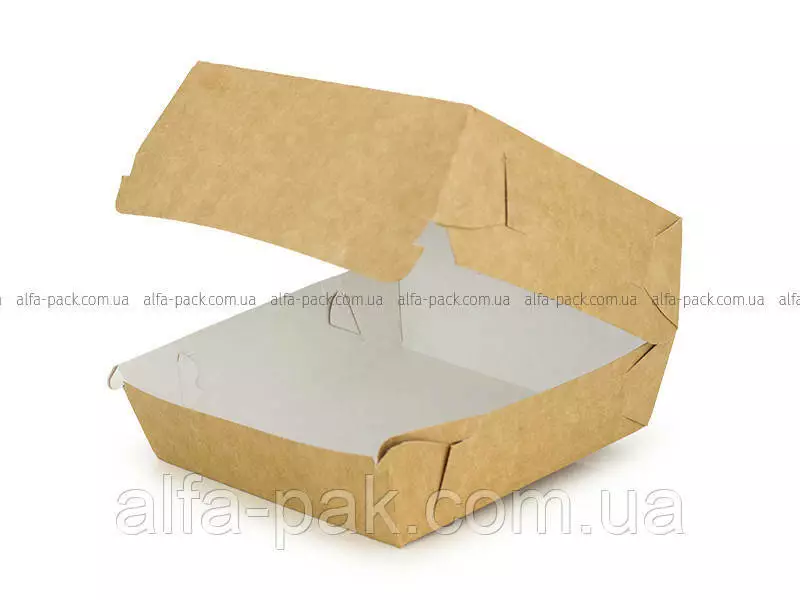 Упаковка бургер 110*110*80 буро-белый