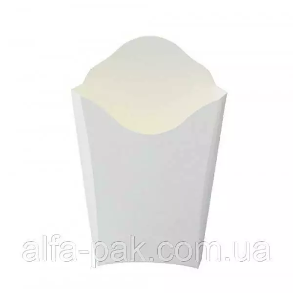 Картонная упаковка для картошки фри удобна и экологична. Данный вид упаковки применяется дла выдачи картофеля Фри в сетях кафе общественного питания и фаст фудах. Упаковка изготовленя из достаточно плотного картона, что предотвратит протекание масла и сохранит ваши руки чистыми.