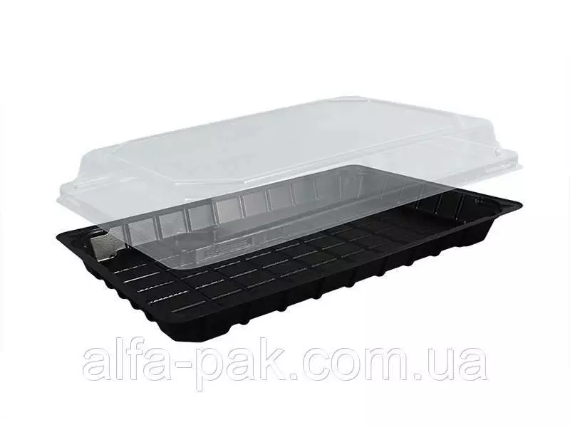 Упаковка для суши 333 BL+PK - это удобная и практичная тара с прозрачной съемной крышкой, которая фиксируется при помощи ребер. Упаковка для суши 333 BL+PK изготовлена из не токсичных материалов, рассчитана на безопасную транспортировку и хранение продуктов питания, сохраняет ее целостность и внешний вид. Легкая и прочная, не протекающая тара востребована в местах, где предусматривается доставка пищи или на вынос.