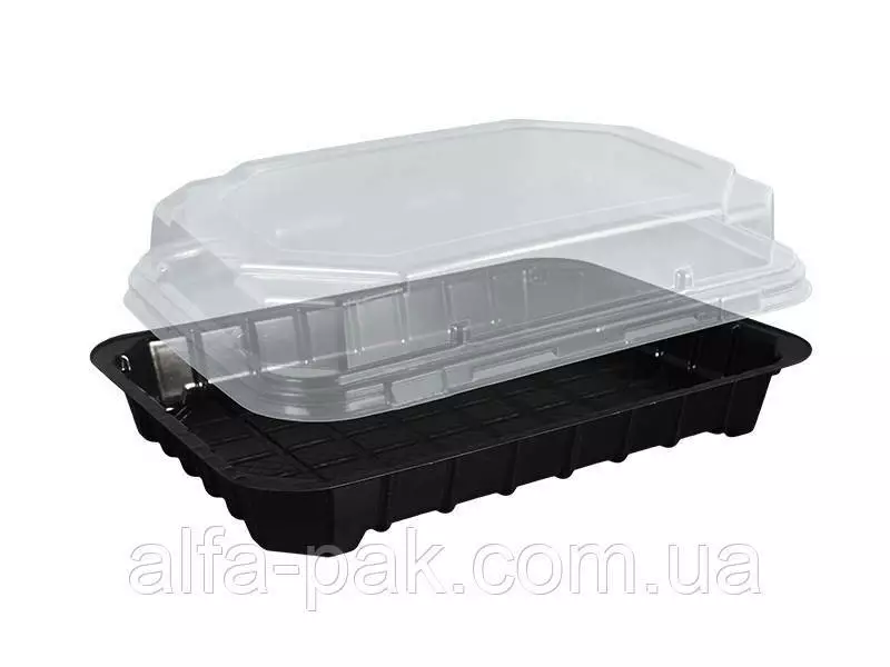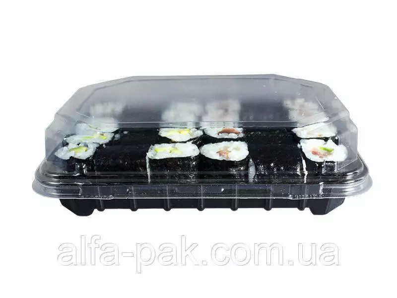 Упаковка для суши ПС-63ДЧ+ПС-63К - это удобная и практичная тара, состоит из черного дна и прозрачной съемной крышки, которая фиксируется при помощи ребер. Упаковка для суши ПС-63ДЧ+ПС-63К изготовлена из не токсичных материалов, рассчитана на безопасную транспортировку и хранение продуктов питания, сохраняет ее целостность и внешний вид. Легкая и прочная, не протекающая тара востребована в местах, где предусматривается доставка пищи или на вынос.