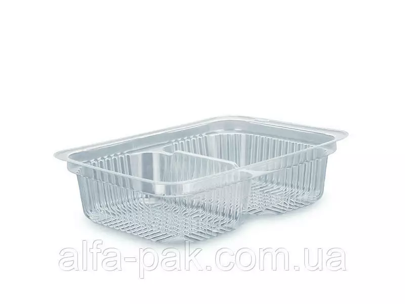Данная упаковка чаще всего используется для сыпучих (приправ), соусов, джемов, молочных продуктов (сметана, сырковые и творожные массы и т.д.) и меда. В данной продукции крышка плоская съемная, фиксируется при помощи ребер на внутренней части. Благодаря тому, что контейнер изготовлен из прозрачного материала, покупатель легко сможет увидеть товар, не открывая при этом упаковку.