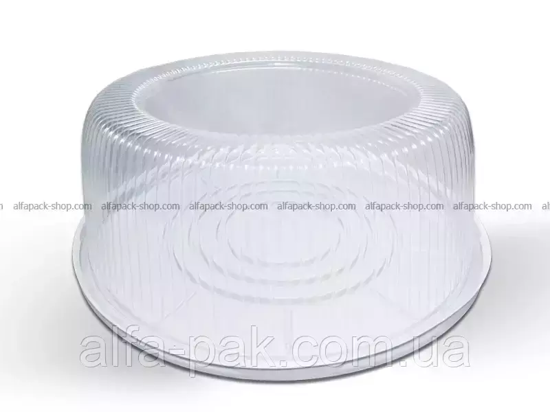 Данная упаковка чаще всего используется для расфасовки тортов, пирогов, выпечки, печенья, пирожных и другой кондитерской продукции. Благодаря тому, что контейнер изготовлен из прозрачного материала, покупатель легко сможет увидеть товар, не открывая при этом упаковку. Данная продукция состоит из двух частей, имеет открывающуюся съемную прозрачную крышку, плотно закрывающуюся при помощи внутренних ребер на плоском дне.